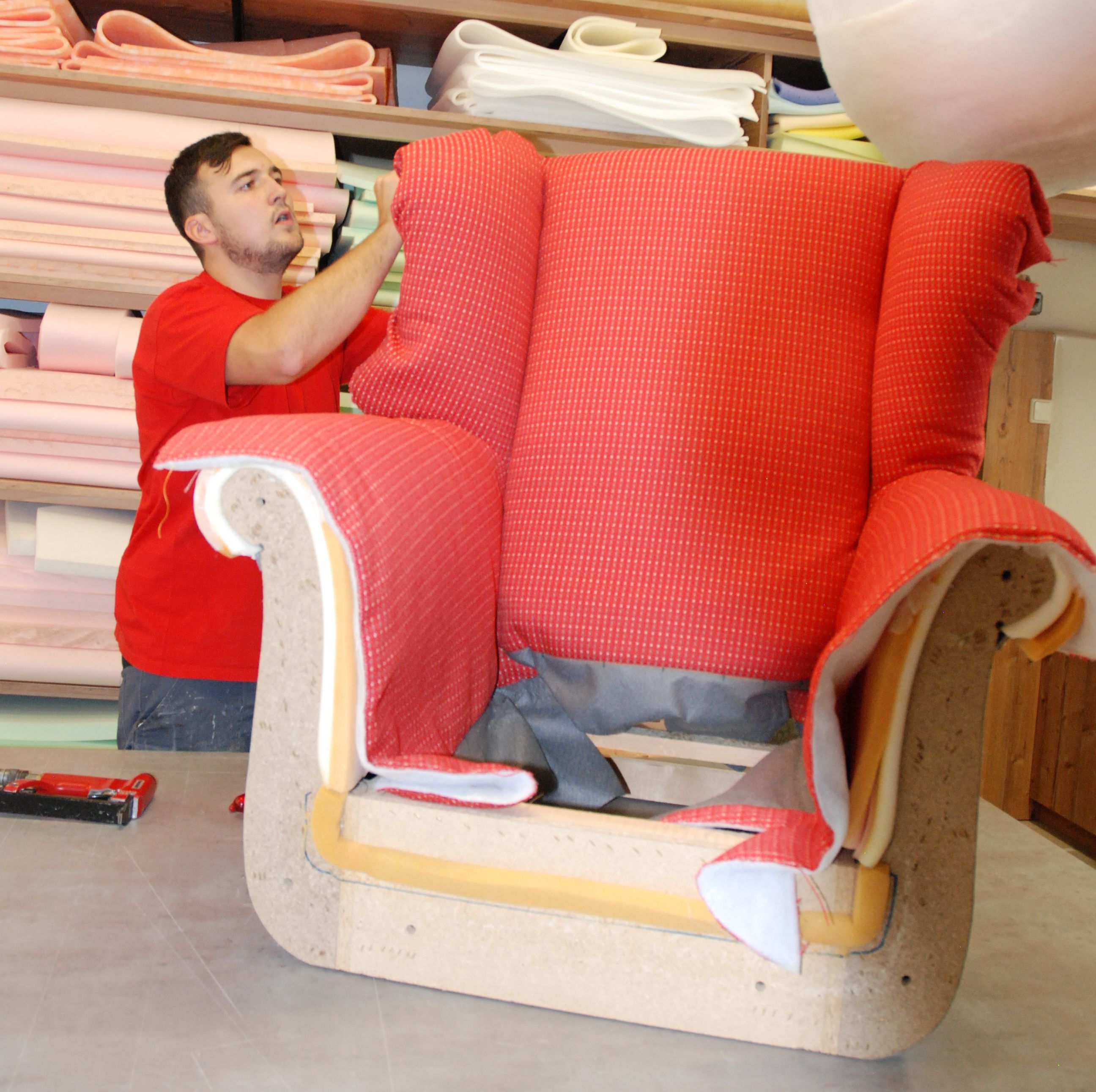 Polstermöbel werden bei uns noch per Hand restauriert. So werden diese Möbel bei uns noch geschnürt, ein Handwerk, das in der Branche kaum mehr ausgeübt wird. Unsere Mitarbeiter beziehen in höchster handwerklicher Fertigkeit Polstermöbel jeder Art – ganz gleich, ob es sich um eine alte, abgewohnte Sitzecke oder einen Ohrensessel aus früheren Zeiten handelt.